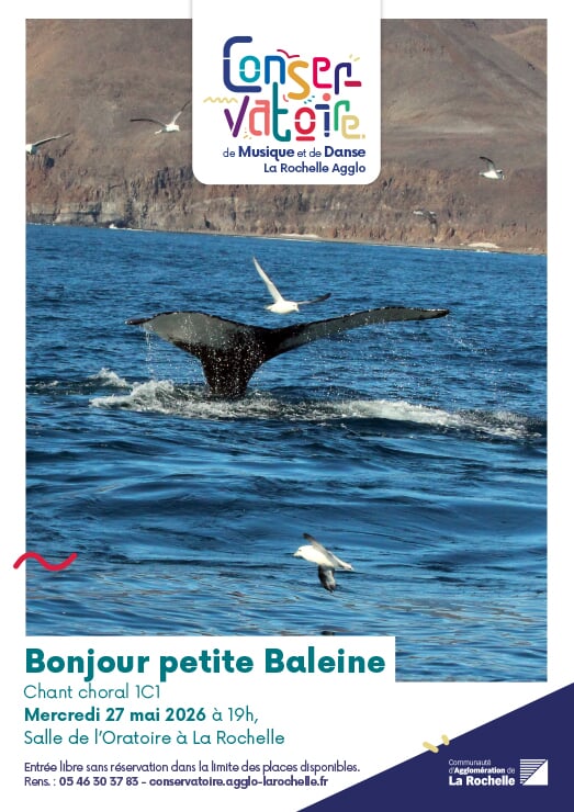 - Mercredi 25 mars à 19h, salle de l’Oratoire à La Rochelle : Concert Hymne à la Nature, avec les Petites et Grandes Voix. Accompagnées par les classes de piano et de harpe.
