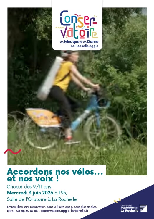 - Jeudi 30 avril à 19h, salle de l’Oratoire à La Rochelle : Spectacle Les contes partent en live avec les classes de piano, flûte traversière, clarinette. En partenariat avec la Médiathèque Michel Crépeau.