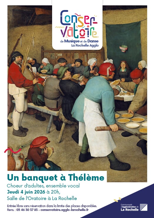 - Dimanche 29 mars à 17h, espace Bernard Giraudeau à La Rochelle : Concerts de l'Ateliers Vents, l'Orchestre d’Harmonie 1 et Ensemble de flûtes traversières.